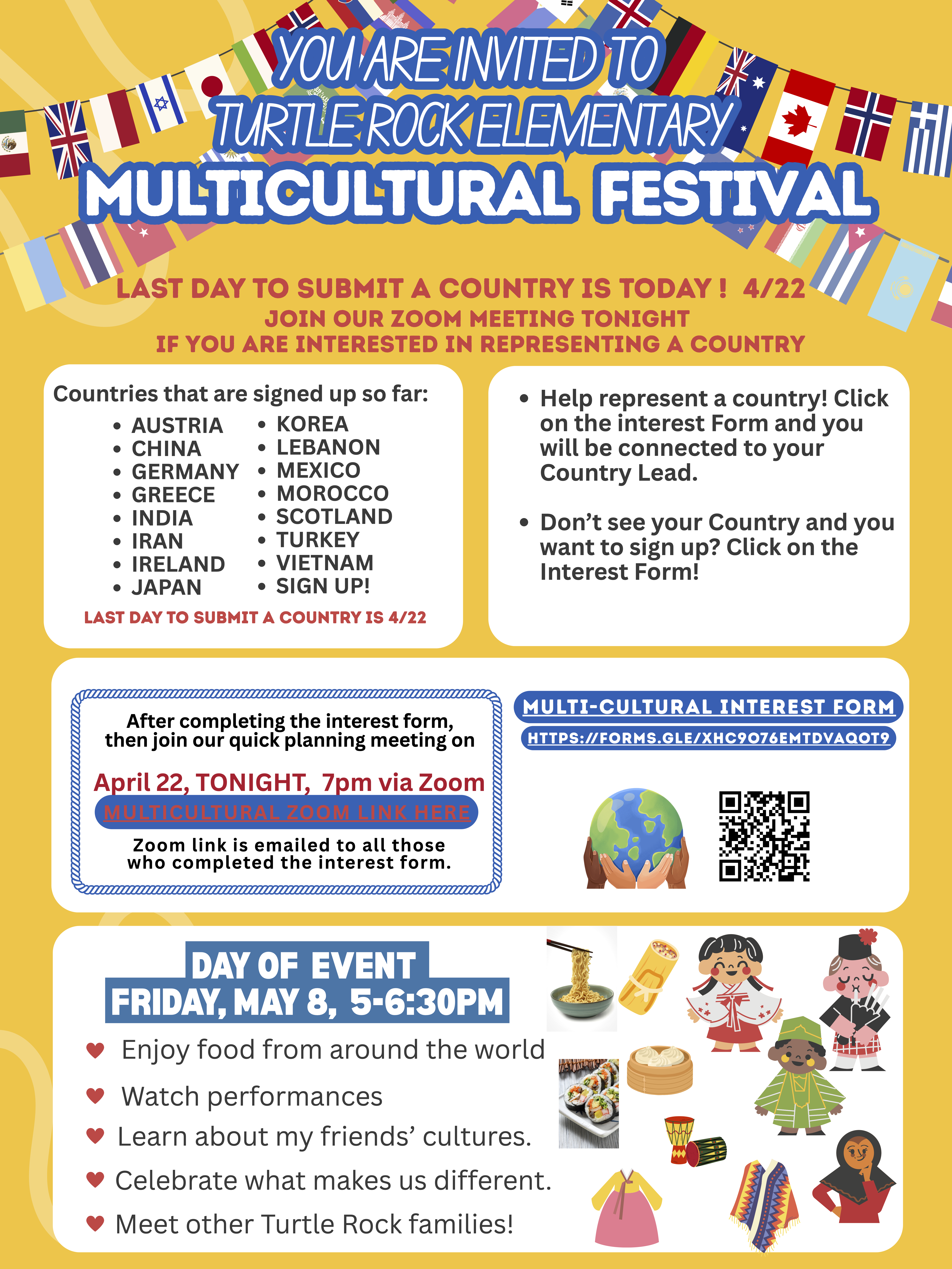 Multicultural Festival Meeting & Last Day to Sign Up for Table