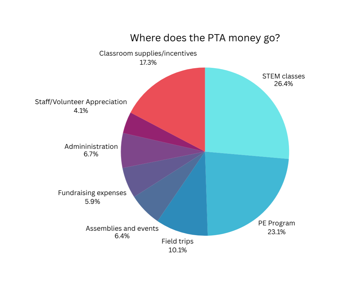 Not including any administration expenses, the PTA spends an average of $185 per student directly towards school programs and supplies in the current school year.