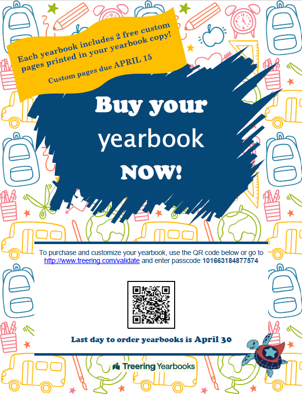 Buy your yearbook on Treering (School passcode 101663184877574).